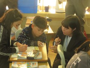 授業後には、先生たちも集まって、子どもたちの学びをさらに豊かにするための話し合いを行いました。