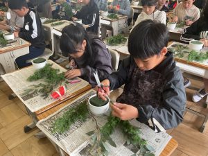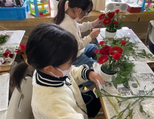 子どもたちからは、「花を挿すのが楽しかった!」「家族に渡すのが楽しみ!」