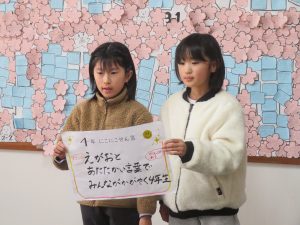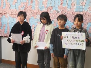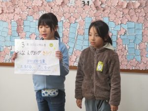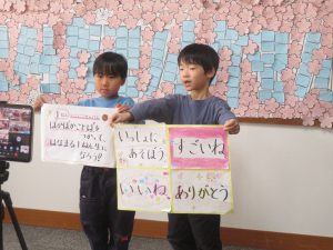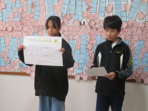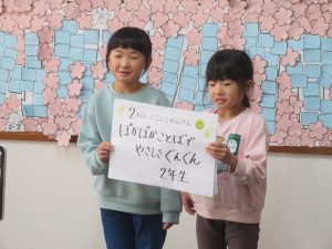 全校で集めた「あったか言葉」を背景に、1年生からおおぞらまで、取り組んだ内容とその成果について、代表児童が堂々と発表しました。より一層、優しさと温かさに満ちた学校になるきっかけになればと思います。
