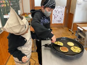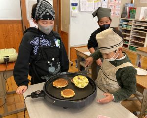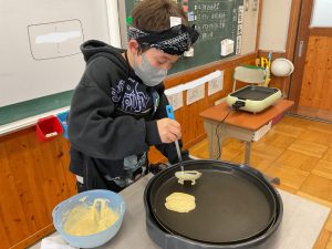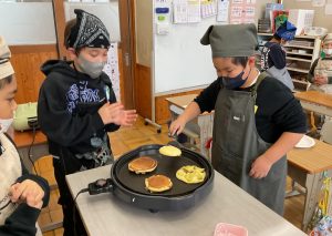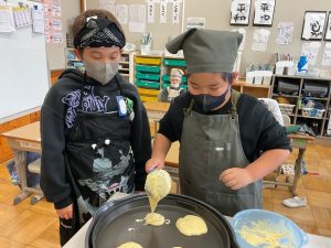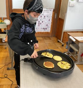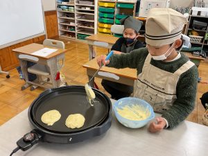 ちょっとした言い合いからトラブルになりそうなところを「おいしいホットケーキを食べるんだよね」を思い出して、自分の気持ちをコントロールして、折り合いをつけて、調理を続けることができました。