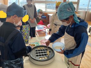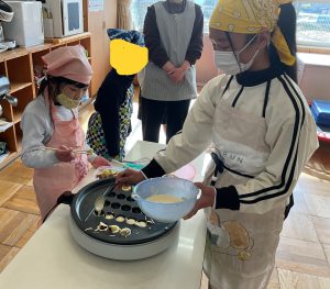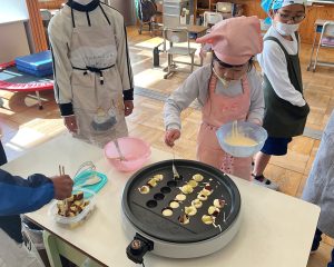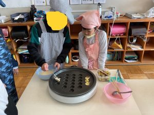 12月4日(木)さつまいもinベビーカステラ(子ども達は「たこやき」って言っています) を作りました。