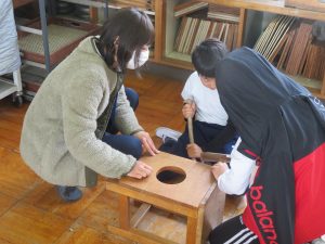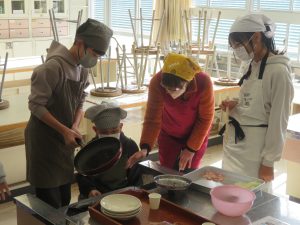 4年生図工「のこぎりの使い方」 6年生家庭科「ベーコンポテト作り」