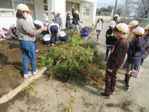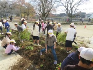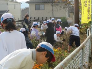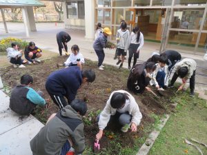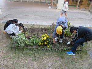 春から夏にかけ、学校を彩った花壇の花も、その時期を終えました。これからは、冬から春にかけての花壇の準備を進めていきます。そのスタートの活動として、4年生と福祉委員が、それぞれ担当している花壇の始末と次への準備をしました。