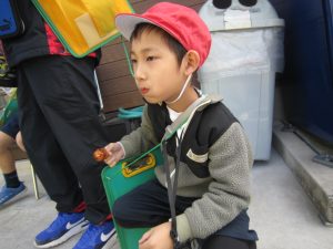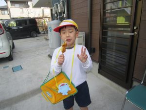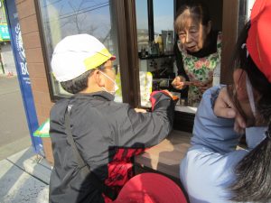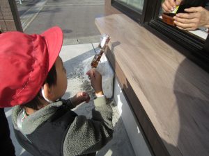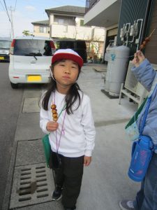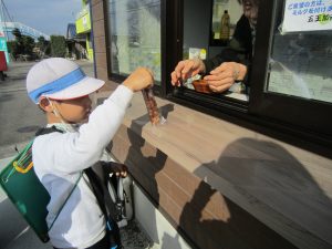 それから、おだんご屋さんへ行って、昨日の練習の成果を発揮して、聞こえる声で注文、自分でお金を払いました。