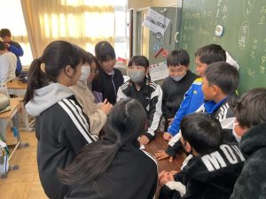 19日(金)に2年生へエイトジャンプを教える会を行う予定で,教え方の打ち合せと練習を行いました。