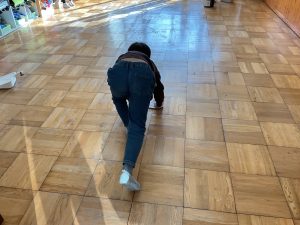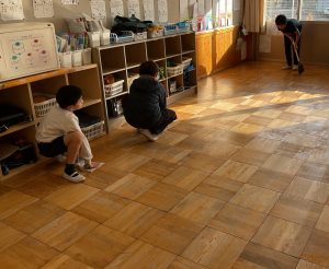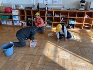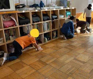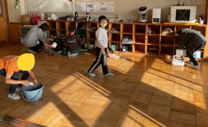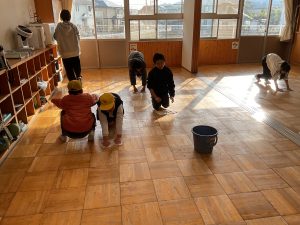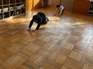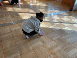 それから、床の水拭きをみんなでがんばりました。