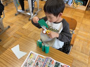 門松はたくさんのパーツがあり、たくさん切ったり、貼ったり。