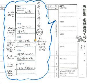 3.冬休みのくらし めあてを書くことができていない人は以下の見本を参考にしてください。