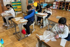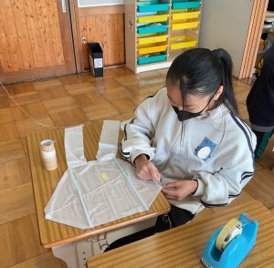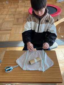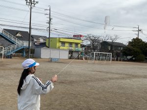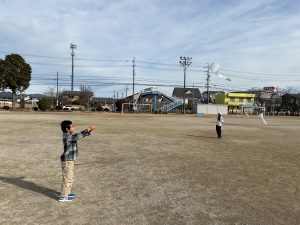 1月7日(水)レジ袋を使って、凧を作り、凧あげをしました。