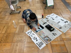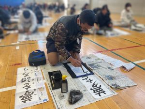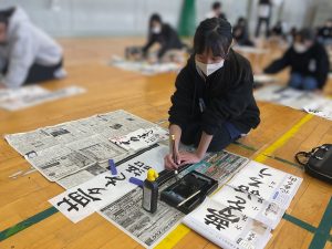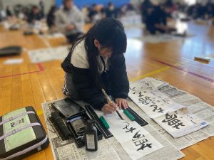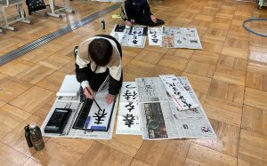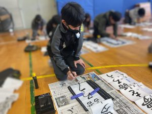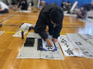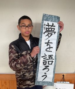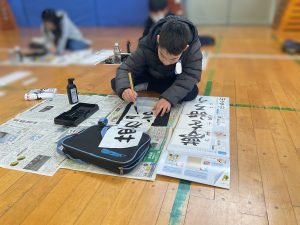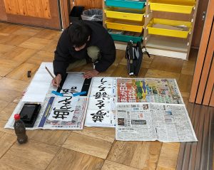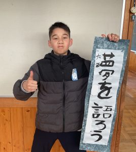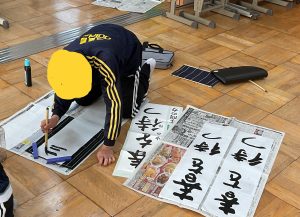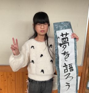たいようは教室で今年の恵方(南南東)を向いて書きました。
