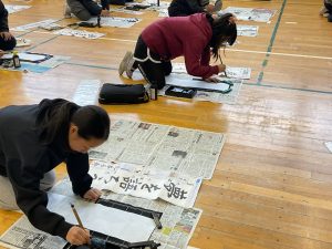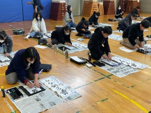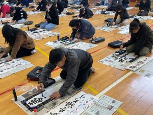 1月9日(金)に、書き初め会を行いました。児童たちは、「夢を語ろう」という言葉を、心を込めて書き上げました。