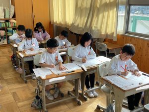 冬休み明けも子どもたちは、落ち着いて学習に取り組んでいます。書き初めでは、集中しながら丁寧に書く姿が見られました。算数の「いろいろなかたち」の学習でも、お家から持ってきた箱の形に注目して、分類分けをしました。また、校庭では雪に触れ、冬の自然を感じながら季節ならではの体験を楽しみました。さらに、学年ドッチボールでは、友達と声を掛け合いながら、ルールを守って体を動かすことができました。