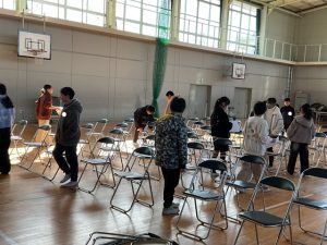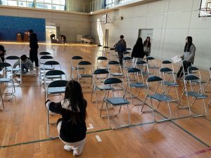 新入生保護者説明会に向けて,5年生が会場準備を行いました。