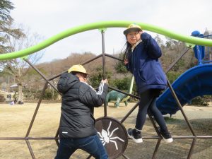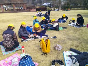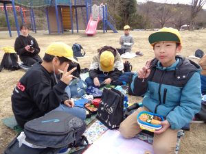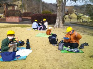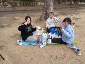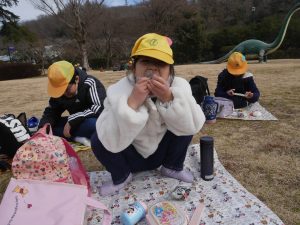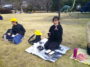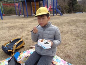 お弁当は、近くの公園で食べました。日差しは弱かったですが、風もなく、気持ちよく食べられました。