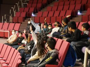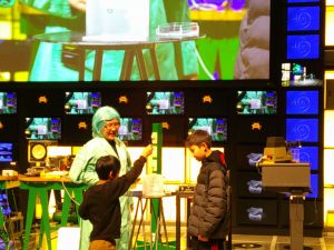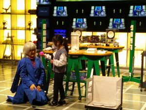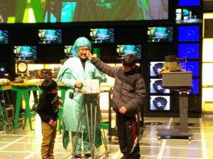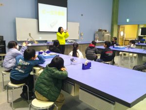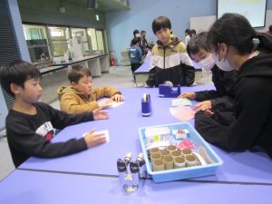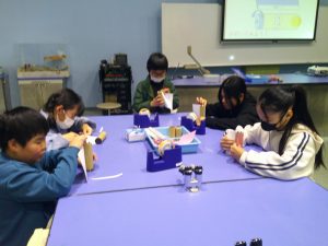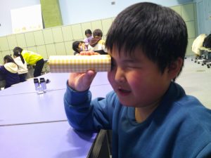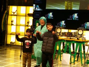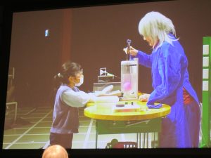 はじめに、サイエンスショーを見ました。テーマは「分子の世界、原子の宇宙」という難しいものでしたが、係の方が行う実験や、児童が参加した実験は、「不思議」と「驚き」で楽しんで見ることができました。