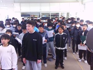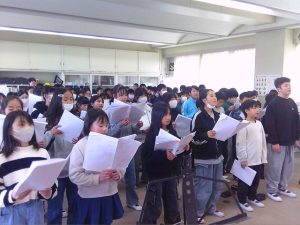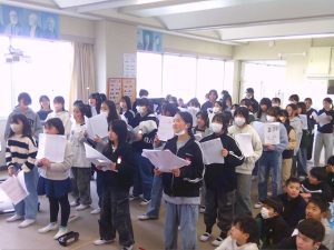 卒業式に向けて,合唱に取り組んでいます。音取りに苦戦しながら,少しずつ声量が上がり,明るい歌声に変わってきています。