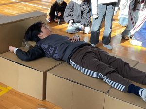 地域の方々や公的な支援もありますが、まずは自分の命は自分で守ることが大切だと学びました。また、実際に避難所を作ってみたり、防災備蓄倉庫の中を見たりして、防災についての知識を深めることができました。