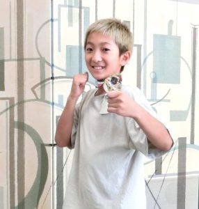 BRIDGE One match challenge-EX47の大会において、優秀な成績を収めた児童が林清美校長に喜びの報告をしました。