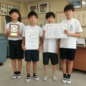 令和7年度(第44回)読売旗争奪可茂支部予選会 岐阜県小学生バレーボールの大会において、優秀な成績を収めた児童たちが林清美校長に喜びの報告をしました。