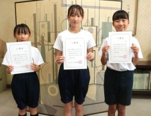 令和7年度 岐阜県青少年美術展少年部 書写部門において、優秀な成績を収めた児童たちに林清美校長から表彰してもらいました。