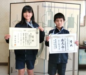 刃物まつり岐阜県剣道大会において、優秀な成績を収めた児童たちが林清美校長に喜びの報告をしました。