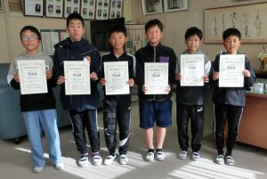 第24回 美濃加茂市駅伝大会において、優秀な成績を収めた児童たちが林清美校長に喜びの報告をしました。