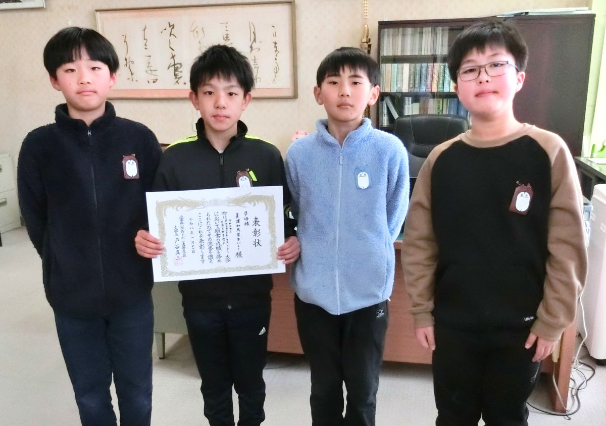 令和7年度 第44回 岐阜県小学生バレーボール可茂支部予選会の大会において、優秀な成績を収めた児童たちが林清美校長に喜びの報告をしました。