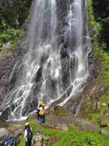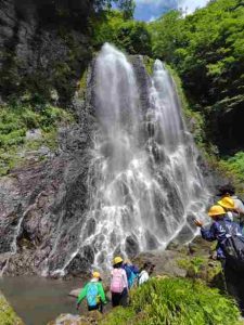 7月4日、4~6年生が、清流の国ぎふ環境教育推進事業の一つとして、乗鞍山麓五色ヶ原の森にでかけました。片道3キロの美しい森を歩いていくと、目の前に大迫力の美しい滝があらわれ、その景色と滝のミストでそれまでの疲れがふきとびました。清流の国ぎふには、こんなすてきなところが、まだまだたくさんあります。全員が、けが無く安全にトレッキングを楽しむことができました。朝早くの準備や、送迎などのご協力を、ありがとうございました。