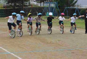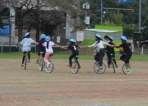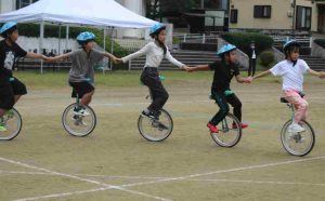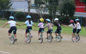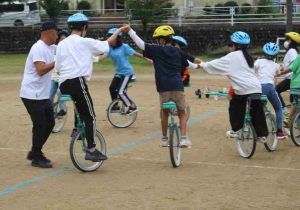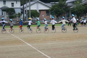 10月8日、全校体育の時間に、大下さんが演技指導してくださいました。みんなで声を掛け合って集中して練習しました。みんなで支え合いながら練習を積み重ねていく姿に、感動をもらっています。