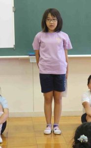 10月10日、令和7年度前期の終了式を行いました。3名の児童が、前期に頑張ったことを話しました。目標をもって取り組んできたことがわかり、一人一人の努力する姿が目に浮かびました。地域の皆さんや保護者の皆さんに支えられて、大きく成長することができました。ありがとうございました。後期もどうぞ、よろしくお願いします。