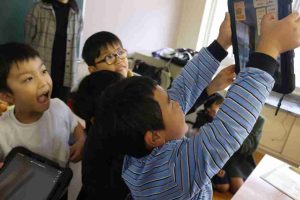 11月5日、愛知県瀬戸市の株式会社スピード(デジタルコンテンツ・ソフトウェア開発)の皆さんによる、ARボード体験授業が行われました。美濃加茂市アイビー不動産様の寄付金と公益財団法人日本教育公務員弘済会岐阜支部様の助成金を活用して、三和小オリジナルのARボードを制作していただきました。今日の授業では、立体を積み重ねていろいろなものを作りました。次回の体験授業で、今日作ったものが、三和小ARボードに現れるようです。楽しみですね。
