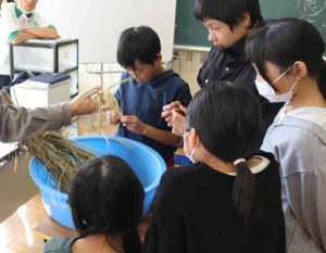11月6日、5・6年生が地域講師の方から、米作りと日本人の関りについて学びました。11月29日(土)のふるさと祭りのもちつき会にむけて学びを続けます。
