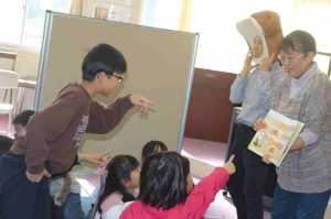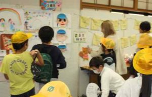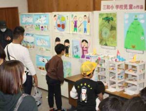 読み聞かせの後には、連絡所に三和のふるさと祭りの展示を見学にいきました。子供たちのすてきな作品を展示してくださり、ありがとうございました。