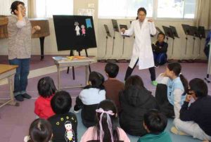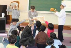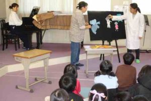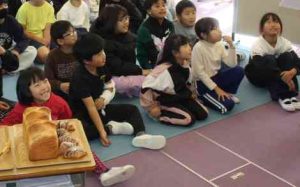 11月29日(土)、もちつき会のあと、音楽室でほたるんさんの読み聞かせがありました。「パンどろぼう」と「ねこのお医者さん」です。ほたるんさんが、とっても楽しく演じてくださって、みんなが笑顔になりました。「ねこのお医者さん」では、ピアノの演奏に合わせて歌って、元気よく「ニャー!!!」と叫びました。大笑いの楽しい時間を、ありがとうございました。