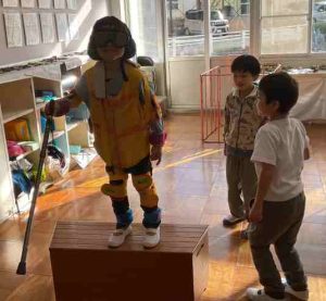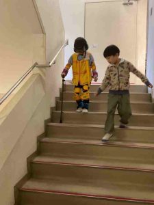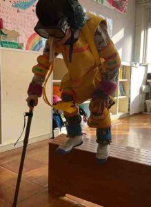 12月5日、1年生が高齢者疑似体験を行いました。高学年に比べると重りは軽めのものでしたが、それでも、初めて体験する動きにくさを感じて、助けたり、支えたりすることの必要性を実感することができました。