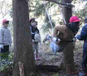 12月16日、森林文化アカデミーの萩原・ナバ・裕作さんの「森の時間」森あそび森まなび推進事業を行いました。三和の富士山の登山道入り口付近の里山で、子供たちがやりたいことにチャレンジしました。里山で遊ぶのは、本当におもしろい!子供たちは、たくましい!