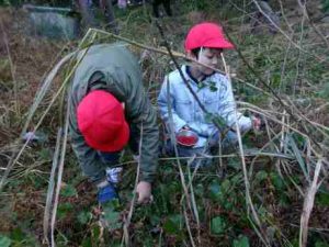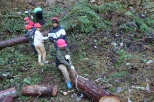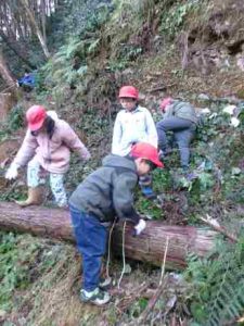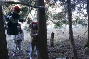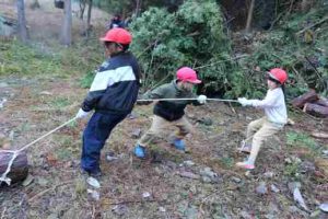 12月16日、森林文化アカデミーの萩原・ナバ・裕作さんの「森の時間」森あそび森まなび推進事業を行いました。三和の富士山の登山道入り口付近の里山で、子供たちがやりたいことにチャレンジしました。里山で遊ぶのは、本当におもしろい!