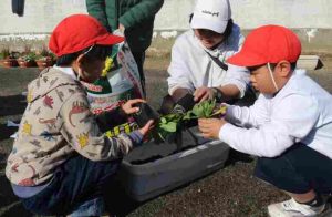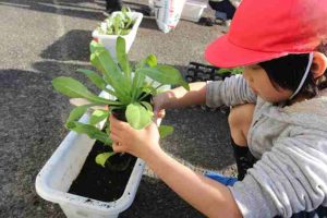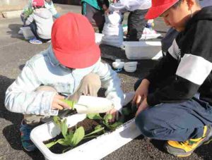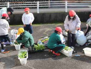 12月23日、昼休みに1~3年生の有志の皆さんが、花苗体験で育てたキンセンカの苗をプランターや植木鉢に植え替えました。キンセンカの苗は、指導者の方もびっくりされるくらい大きく育っています。春には、オレンジ色や黄色の花を咲かせてくれることでしょう。今から楽しみですね。有志の皆さん、ありがとうございました。