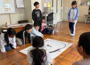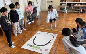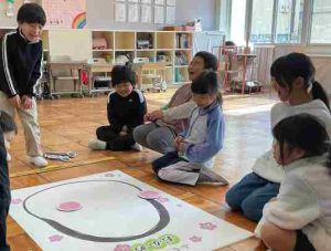 1月7日、1・2年生で、正月遊びをしました。「ふくわらい」で、みんな大笑い!でした。