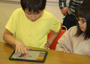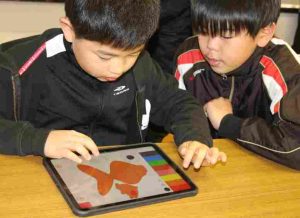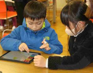 1月22日、愛知県瀬戸市にある(株)SPEEDの岩城さんの2回目の授業がありました。前回の授業で児童が作ったキャラクターがARボードに飛び出して、わくわくしながら授業が始まりました。今日は、塗り絵をすると金魚になって水槽を泳ぎだすという制作をして、「自分だったら、何をデジタルで見せたいか。」というアイデアを出しました。大切なのは、パソコンが使えるということではなく、自分の体験を通して、誰かを幸せにするために何ができるのかを、「考え、考え続ける。チャレンジする」ということを、学びました。