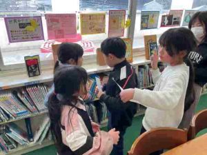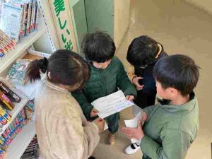 1月27・28日の昼休みに、まなび委員会が図書館で「宝探し」を行いました。まなび委員が計画を進め、一人一人がクイズを考え、準備を進めてきました。当日は、参加したみんなが楽しめていて、とてもいい企画でした。まなび委員会のみなさん、ありがとう。
