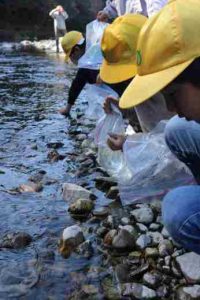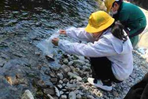 3月12日、12月に卵を送ってもらってから、3年生が教室で育ててきたアマゴを津保川に放流しました。川浦川には放流できないということでしたので、関市の道の駅平成近くの津保川に放流しました。「こんなに、たくさんの稚魚が育ったのですね。」と県の担当の方が驚いていらっしゃいました。水を替えて、水槽を洗って、エサやりをして・・・毎日とても大切に育てましたね。