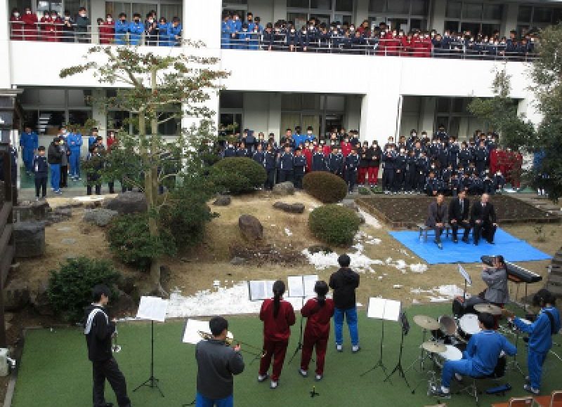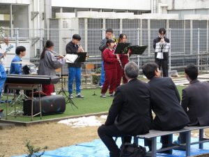 今回は、①吹奏楽の演奏 ②漫才 ③3年有志による合唱披露 でした。