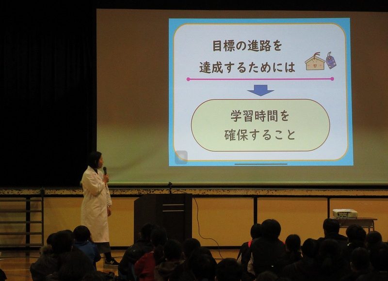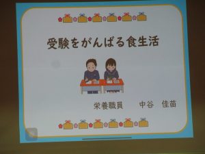 3年生の生徒には、「受験を頑張る食生活」をテーマに、ストレスに負けないために