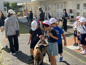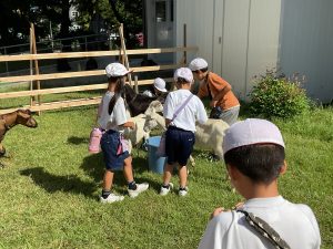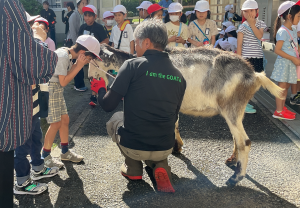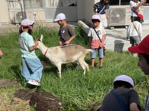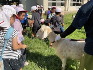 今週は、月曜日にやぎさんふれあいじゅぎょうがありました。児童たちは、「触りたい!」「えさ(草)をあげたい!」とやぎと積極的に関わる姿が見られました。また、やぎの心臓の音を聞いたり、えさをあげたりすることでこれからも動物に優しく接していきたいと考えることができる児童もいました。この活動を迎えるにあたって、動物アレルギーの確認及び、連絡ありがとうございました。