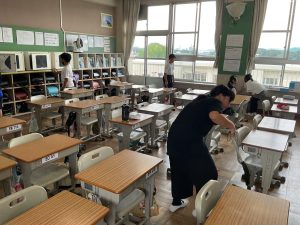 10月10日は、前期の終業式がありました。仲間との関わり、学習、行事、普段の生活といろいろなところで学年目標「Do my best!」の姿で頑張ってきました。
