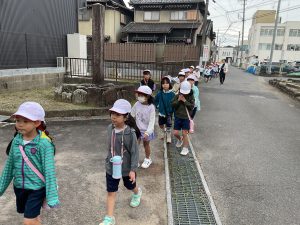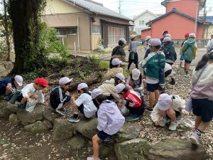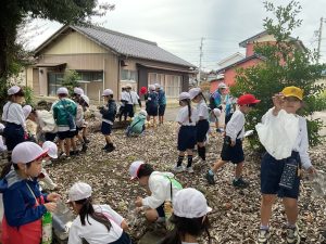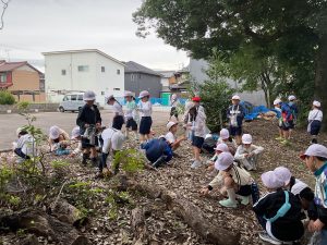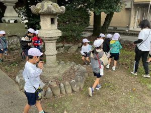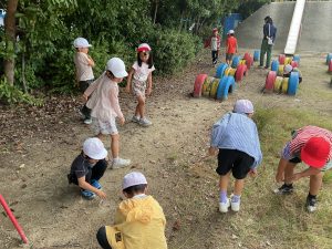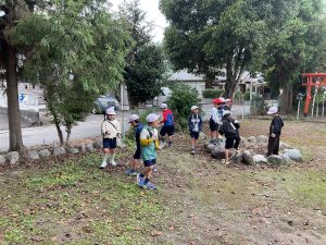 太郎神社ではたくさんの秋と出会いました。大小様々などんぐりを見つけ,みんな楽しそうに集めていました。袋いっぱいの秋が見つかったので,今後は自分の見つけた秋の物を,おもちゃに変身させていきます。今後の活動を楽しみにしていました。