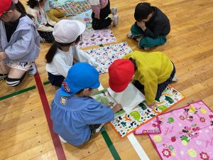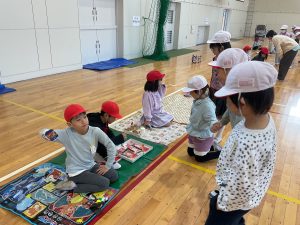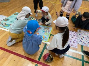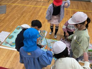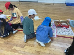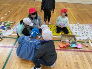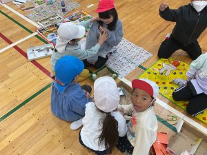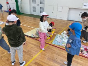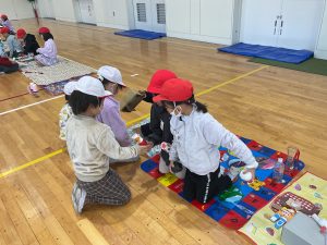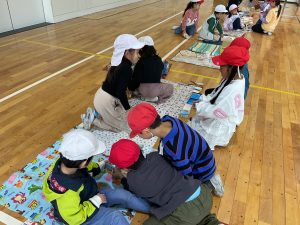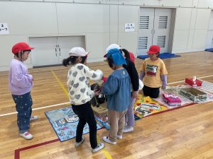 保育園の子供たちを招待して秋祭りを開催しました。自分たちで見つけた,秋の自然物を使ったおもちゃでお店屋さんを開きました。園児に楽しんでもらうために,工夫をして作ったおもちゃで楽しそうに遊んでもらえて大満足の様子でした。自分たちで作ったおもちゃで遊ぶ喜びを感じました。今後の生活でも,自分たちで生活をよりよくしようという思いをもってもらいたいです。