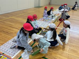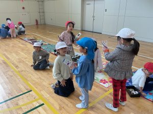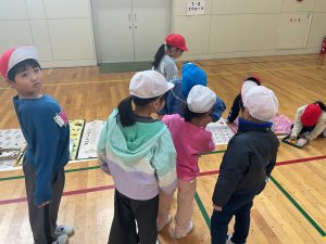 本日持ち帰ることのできる範囲で自分のおもちゃを持って下校しました。けん玉や迷路,的あてなど素敵なおもちゃがたくさん出来上がりました。材料などご家庭でのご準備,ご協力ありがとうございました。ぜひご家庭でも子供たちに遊び方を聞いて遊んでみてください。