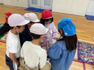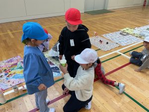 園児との関わり方も学びました。みんなで楽しむための声掛けを意識して,積極的に関わる姿が見られました。園児の手を引く姿や遊び方を教える姿など優しさ溢れる頼もしい姿でした。みんながかっこいいお兄さんお姉さんになれました。今回の秋祭りでまた一段と成長しました。
